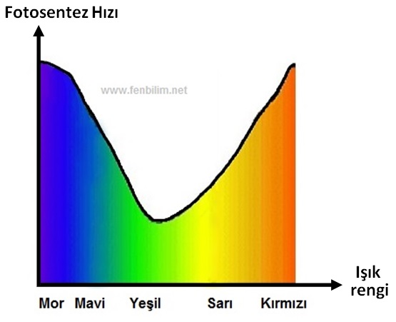 Fotosentez en hızlı mor ve kırmızı ışıkta, en yavaş yeşil ışıkta gerçekleşir.