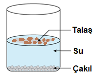 Kum ile talaş karışımını ayırmak için su içerisine atarız. Talaş suda yüzerken, kum suda batacaktır.
