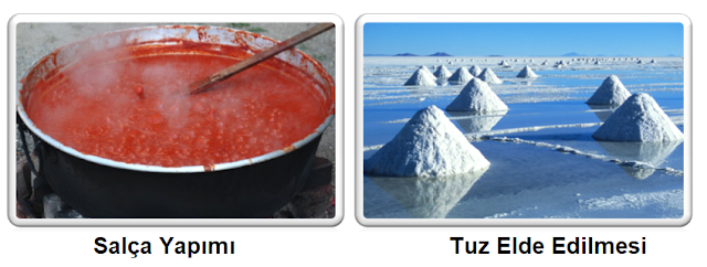 Kum - tuz karışımını su içerisine attığımızda tuz çözünürken kum çözünmez. Karışım süzüldüğünde kum süzgeçte kalacaktır.