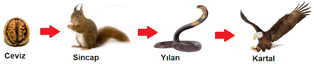 Örnek: Ot → Çekirge → Kurbağa → Yılan → Kartal