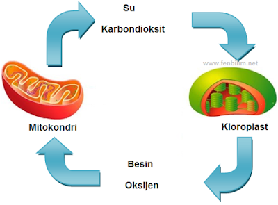 Oksijenli solunumda oluşan su ve karbondioksit fotosentezde kullanılır.