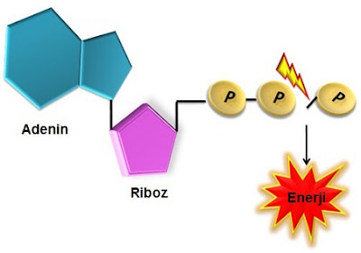 Enerji ATP molekülü içerisinde fosfat bağları arasındadır.